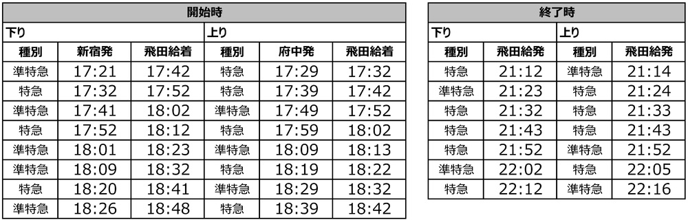 상행…후추 출발 17:29~18:39 특급·준특급/총 8편
