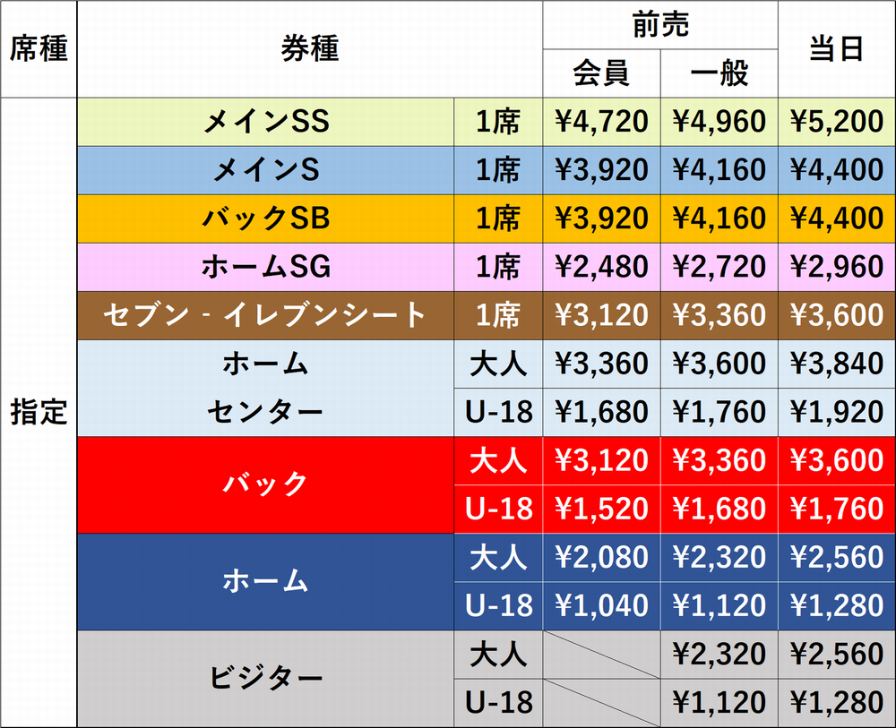 ・대상 좌석 종류: 홈석 하층·상층 및 백 북측 하층
