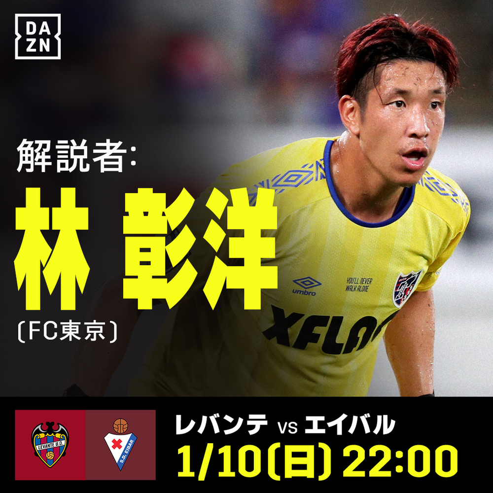 하야시 아키히로 선수가 DAZN에서 중계되는 라리가 제18절 레반테 vs 에이바르 경기 해설로 출연하는 것이 결정되었습니다.