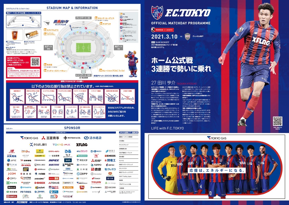 3/10(수) 2021 메이지 야스다 생명 J1 리그 제3절 vs 비셀 고베(18:00 킥오프/아지노모토 스타디움) 공식 매치데이 프로그램에 대해 아래와 같이 안내드립니다.