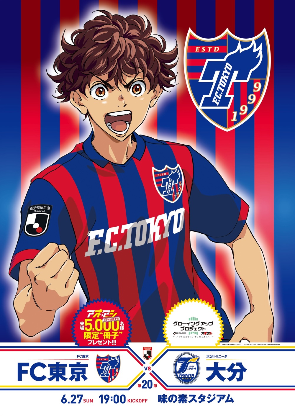 6월 27일(일)에 열리는 2021 메이지 야스다 생명 J1리그 제20절 오이타 트리니타전(19:00 킥오프)에서는 대인기 만화 『아오아시』 콜라보를 실시합니다.