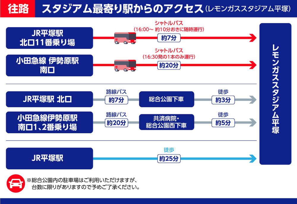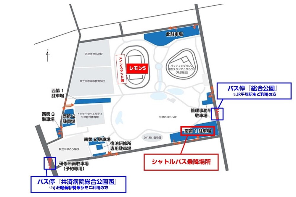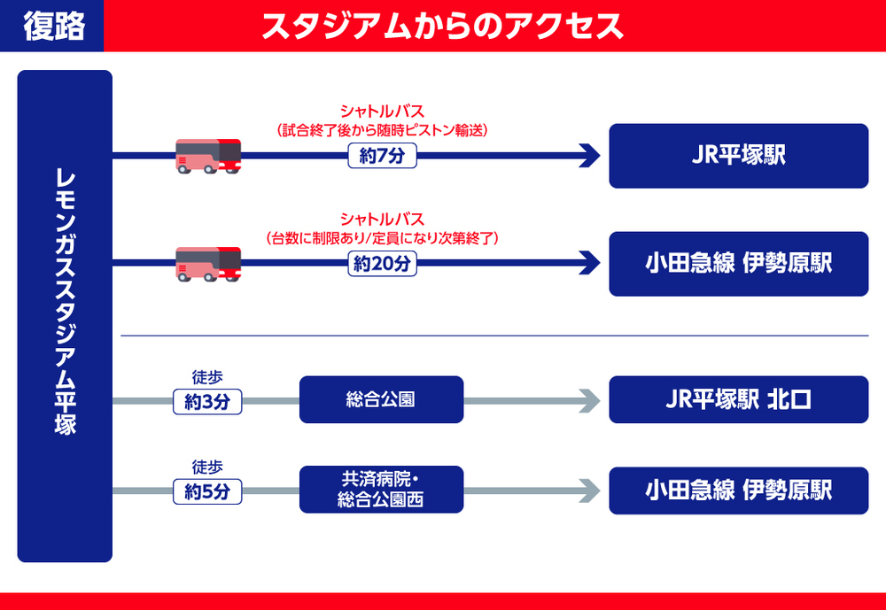※히라츠카역 행 셔틀버스는 경기 종료 후부터 수시로 왕복 운행합니다.