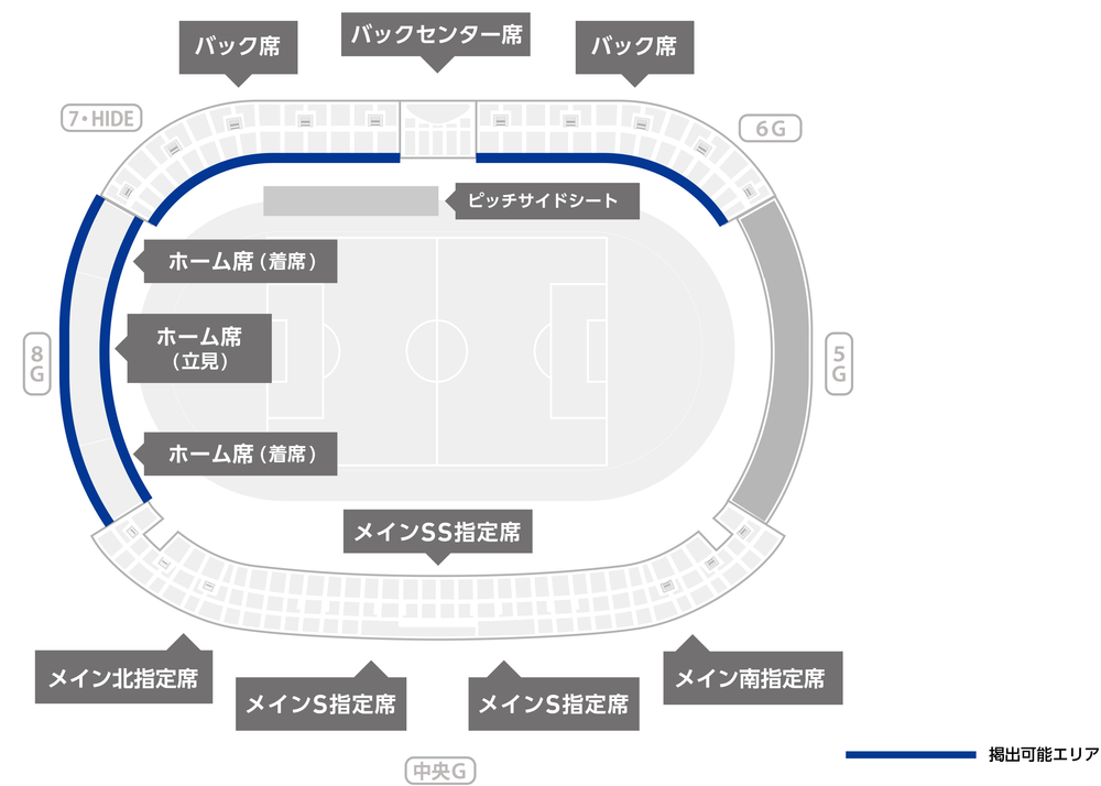・백스탠드 최전방(일부 구역 제외), 홈 골 뒤 최전방 및 최상단부