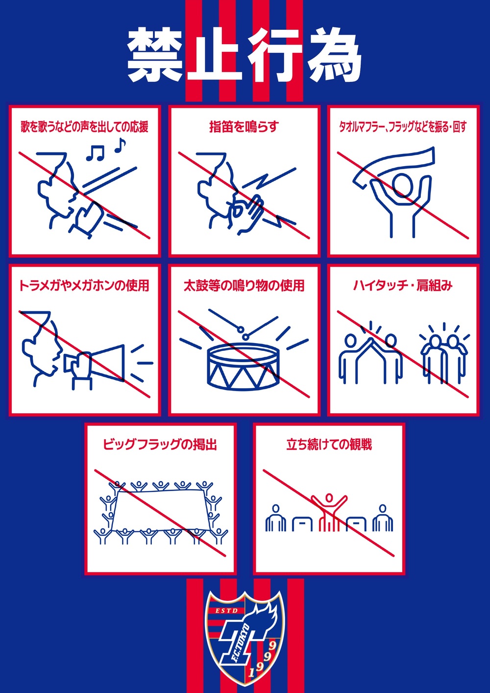J리그 통일 금지 규칙(J리그 공통 관전 매너 & 규칙) 및 FC 도쿄 축구 경기 운영 관리 규정, 그리고 "J리그 신종 코로나바이러스 감염증 대응 가이드라인"을 준수해 주시기 바랍니다.