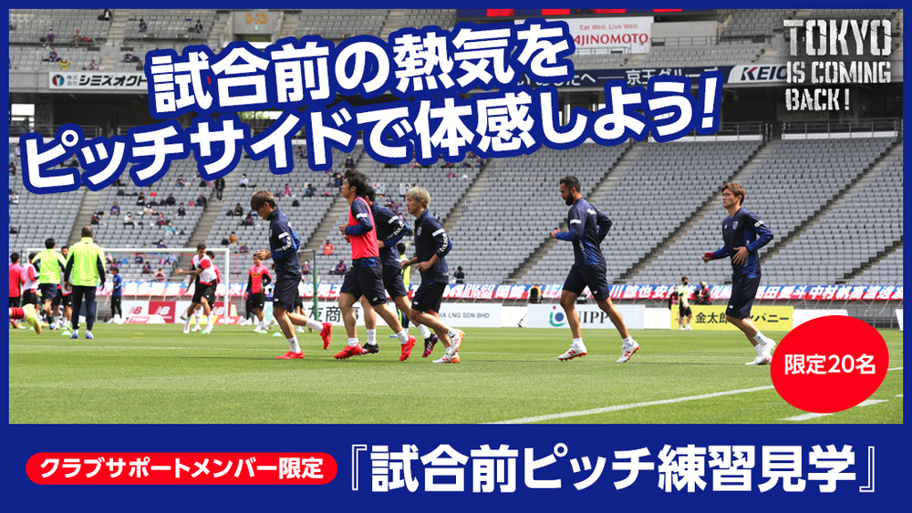아지노모토 스타디움에서의 홈 경기에서 선수와 가장 가까운 피치 사이드에서 경기 전의 열기를 체감해 보세요!