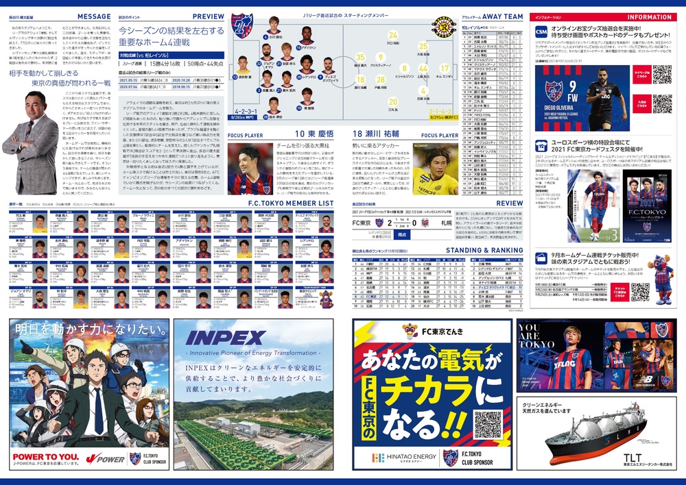 9월 12일(일) 2021 메이지 야스다 생명 J1 리그 제28라운드 vs 가시와 레이솔(19:00 킥오프/아지노모토 스타디움) 공식 매치데이 프로그램에 대해 아래와 같이 안내드립니다.