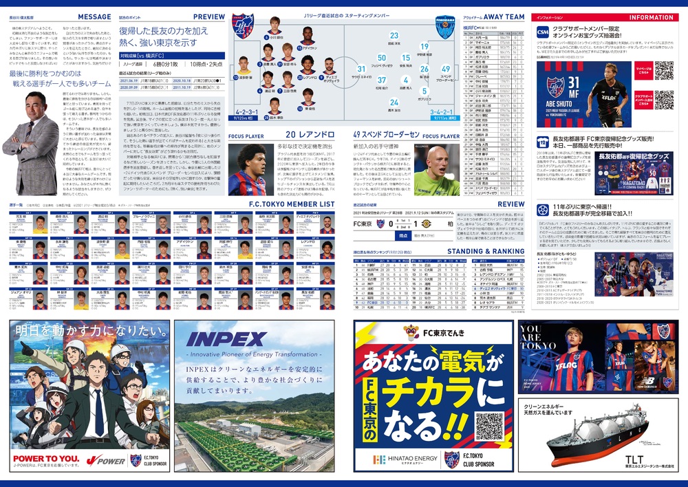 9/18(토) 요코하마 FC전 공식 매치데이 프로그램에 대하여