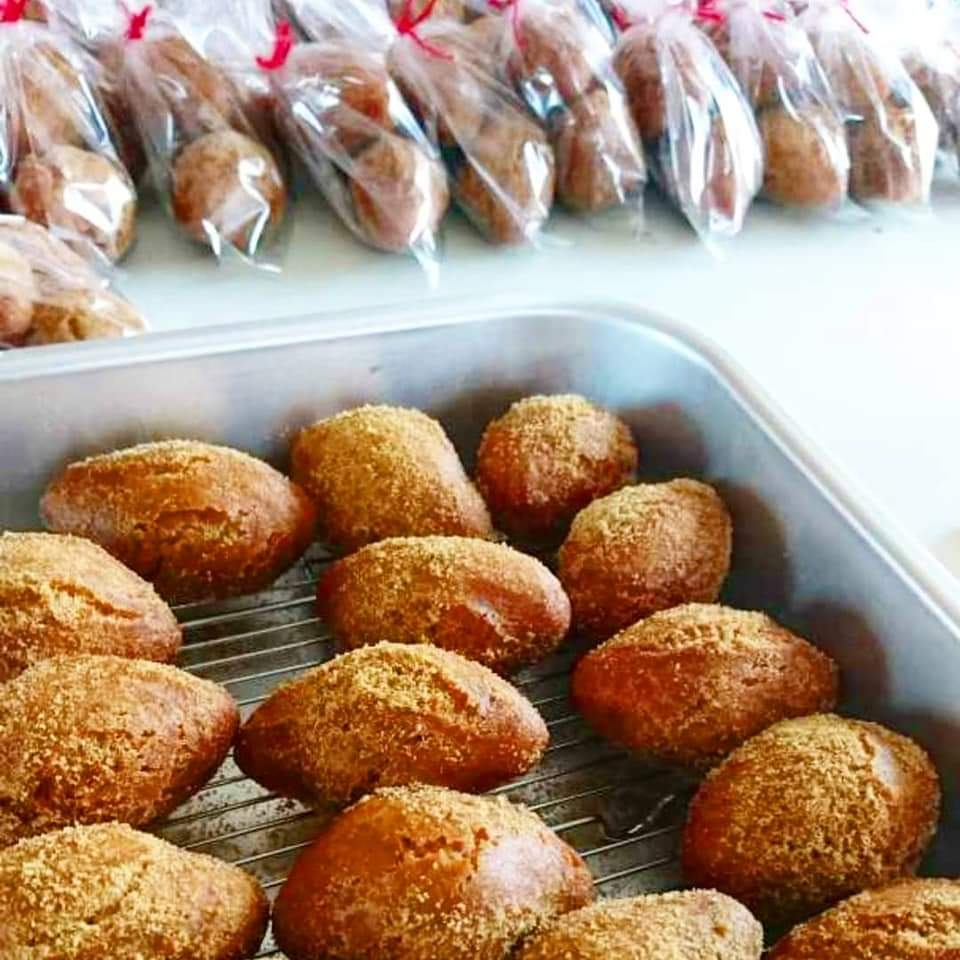 오키나와 전통 과자 "사타안다기"에 후추산 흑미가루를 넣어 쫄깃한 식감으로 완성했습니다.