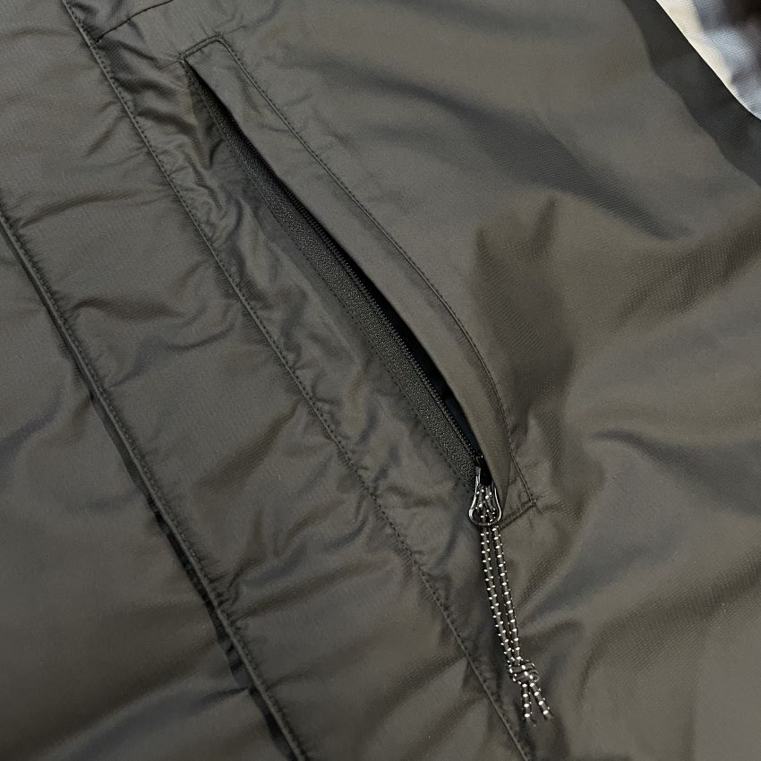 블록 무늬로 고밀도로 짜여져 소재 자체의 찢김 강도가 향상되었습니다. 마이크로파이버 실을 사용하여 보온성도 뛰어납니다. 발수 가공도 갖춘 소재를 사용했습니다.