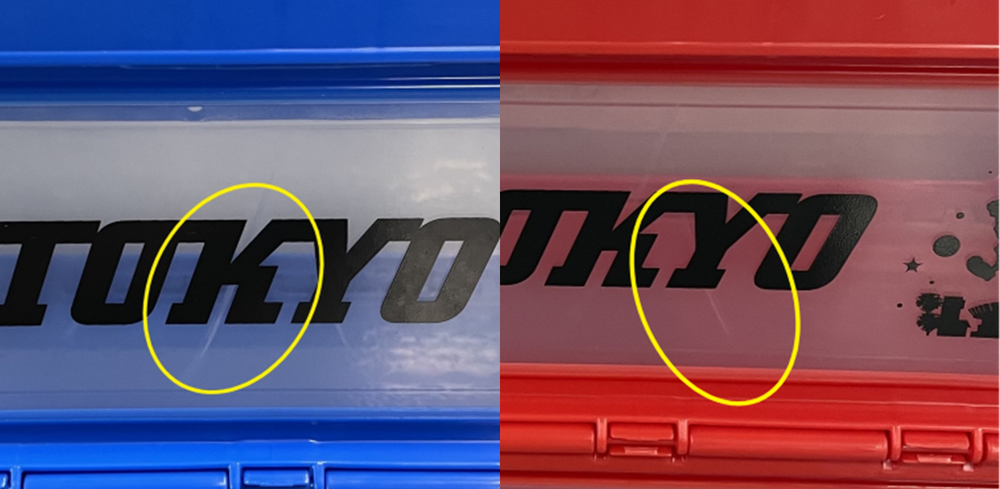 노란색 원선 근처에 있는 선은 플라스틱 가공 시 생기는 특유의 줄무늬입니다.