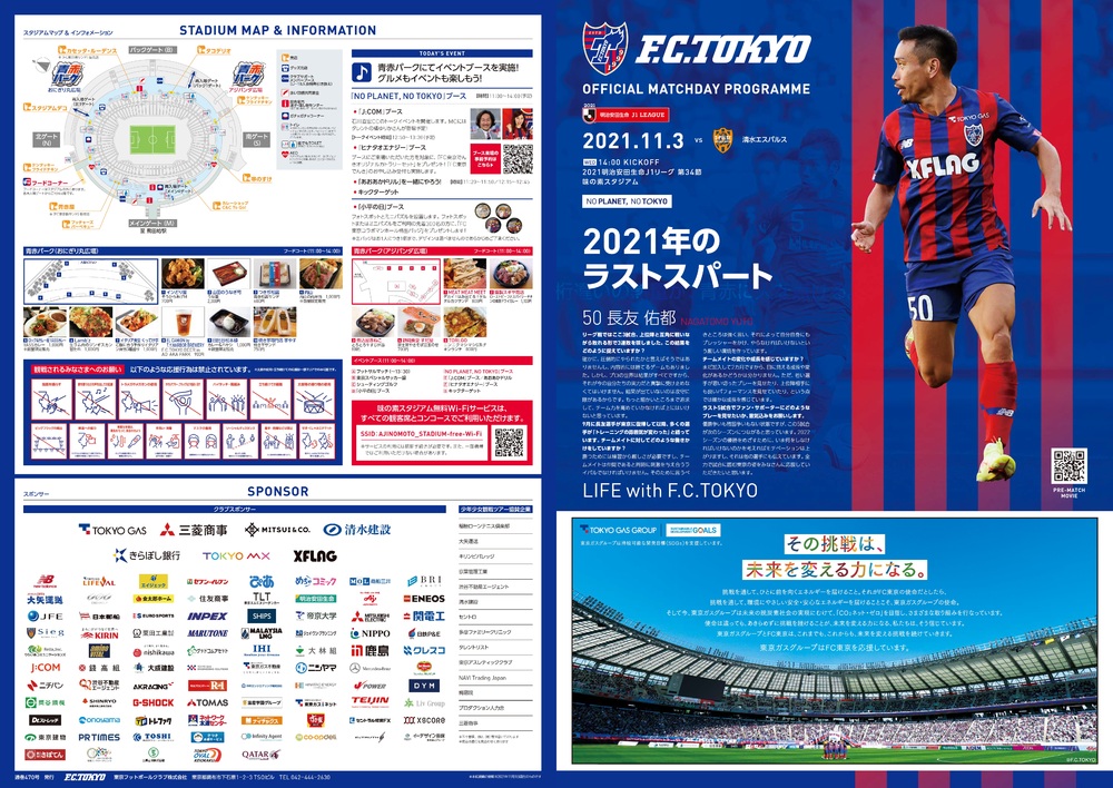 11월 3일(수 공휴일) 2021 메이지 야스다 생명 J1리그 제34라운드 vs (14:00 킥오프/아지노모토 스타디움) 공식 매치데이 프로그램에 대해 아래와 같이 안내드립니다.