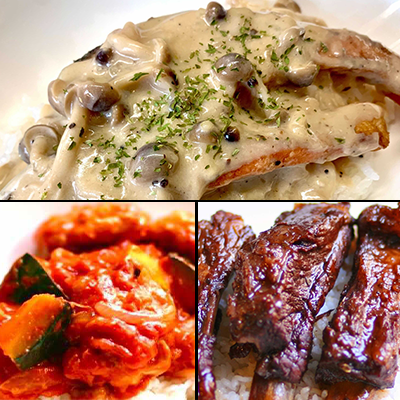 ・모두 추가(밥, 반찬, 샐러드 모두 추가) 3종 세트 1,500엔