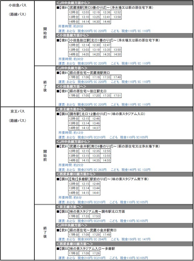 3월 26일(토) 2022 J리그 YBC 르방컵 제3절 vs 쇼난 벨마레(15:00 킥오프/아지노모토 스타디움)에서 운행되는 임시 교통 접근(철도), 셔틀버스·노선버스에 대해 안내드립니다.