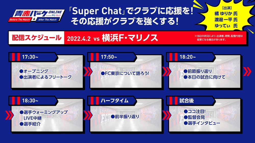이번 요코하마 F.마리노스전에는 타치바나 유리카 씨, 와타나베 잇페이 씨, 유테이 씨가 출연합니다!