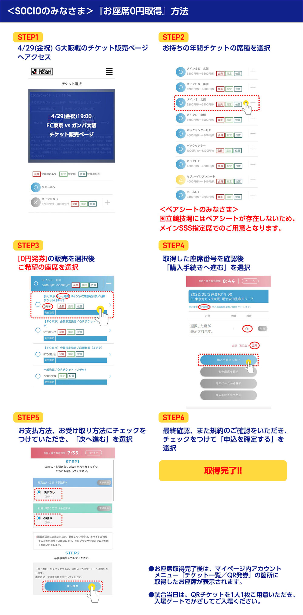 티켓 FC 도쿄에서 ‘좌석 0엔 취득’을 부탁드립니다. 사전 발권이 필요하며, SOCIO 카드로는 입장할 수 없습니다이니 미리 양해 부탁드립니다.