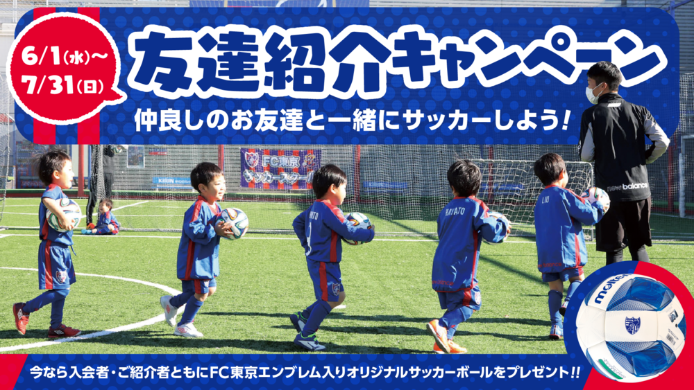 FC 도쿄에서는 FC 도쿄 축구·풋살 스쿨 학생과 그 친구(본 기획 참여 후 입회자)를 대상으로 한 「친구 소개 캠페인」을 실시하오니 알려드립니다.