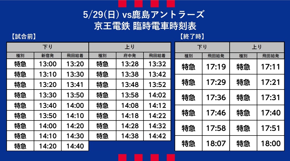 5월 29일(일) 2022 메이지 야스다 생명 J1리그 제16절 vs 가시마 앤틀러스(15:00 킥오프/아지노모토 스타디움)에서 운행되는 임시 교통 접근(철도), 셔틀버스·노선버스에 대해 안내해 드립니다.