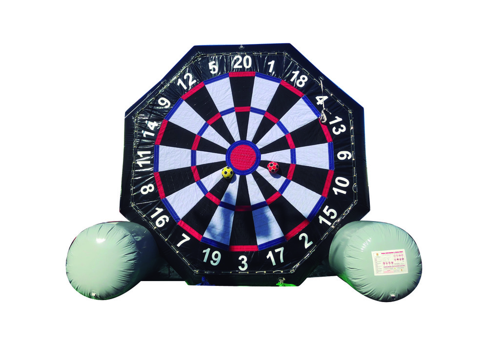 커다란 다트 보드에 축구공을 힘껏 차서 점수를 겨뤄보자!
