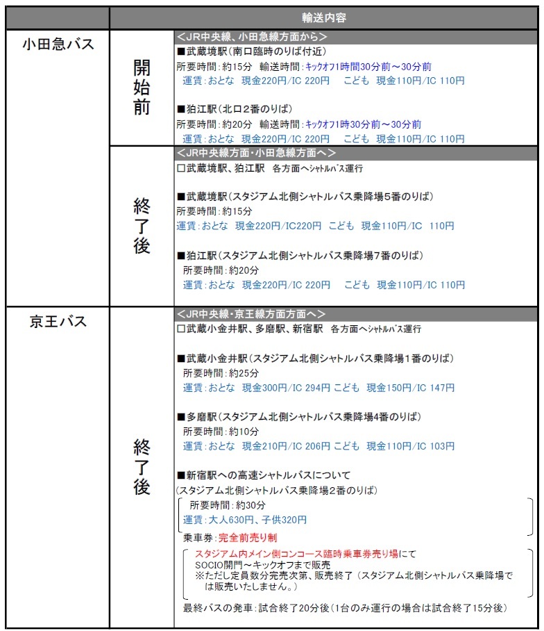 8월 13일(토) 2022 메이지 야스다 생명 J1리그 제25절 vs 세레소 오사카(19:00 킥오프/아지노모토 스타디움)에서 운행되는 임시 교통 접근(철도), 셔틀버스·노선버스에 대해 안내해 드립니다.