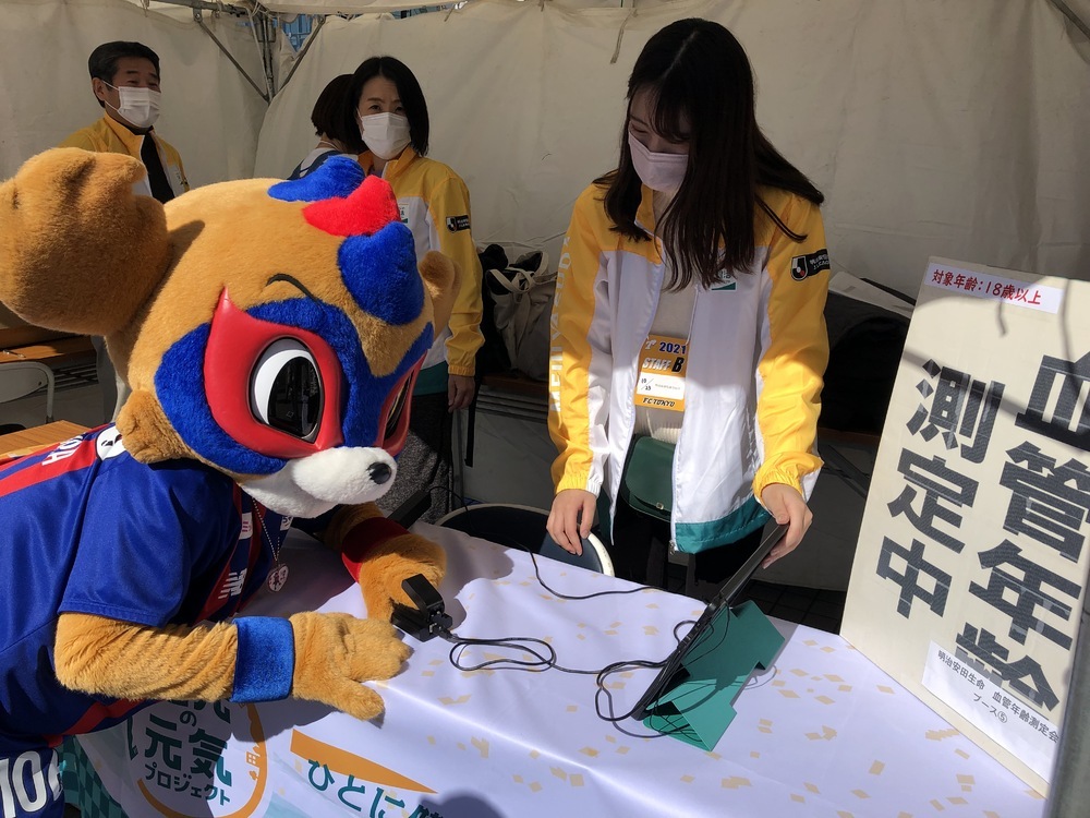 과거 세대별 평균값 데이터 맥파를 기준으로 혈관의 단단함과 부드러움을 "혈관 나이"로 산출합니다. 혈관 나이 측정에 참여하신 분께는 FC 도쿄×메이지 야스다 생명 콜라보 디자인의 쿨 타월(비매품)을 선물로 드립니다!
