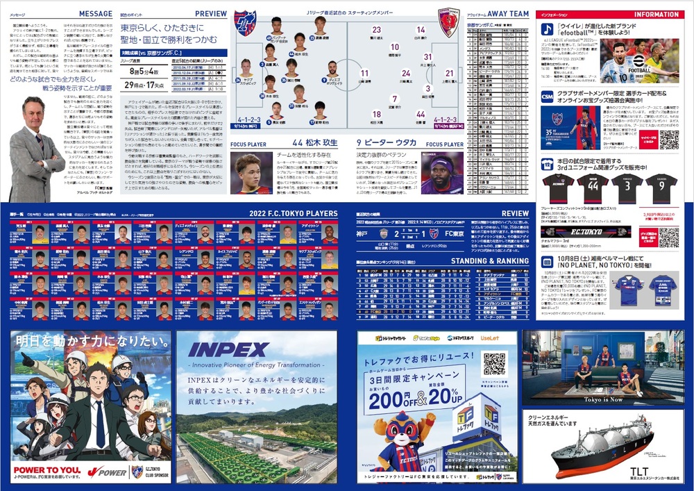 9월 18일(일) 2022 메이지 야스다 생명 J1리그 제30라운드 vs 교토 산가 FC(19:00 킥오프/국립경기장) 공식 매치데이 프로그램에 대해 아래와 같이 안내드립니다.
