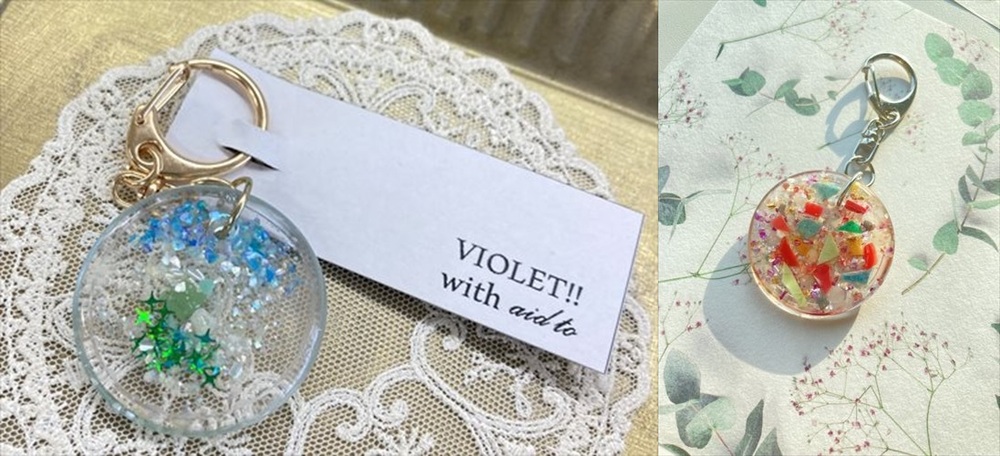 ①아라카와 청소 활동에서 수집한 마이크로플라스틱을 사용한 액세서리/키홀더 전시·판매
