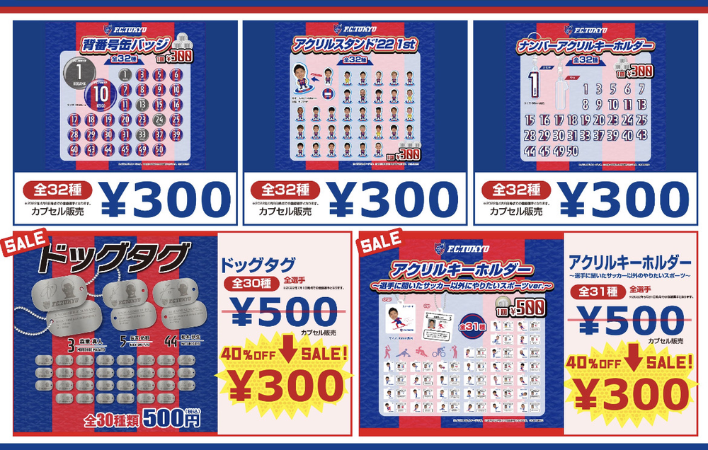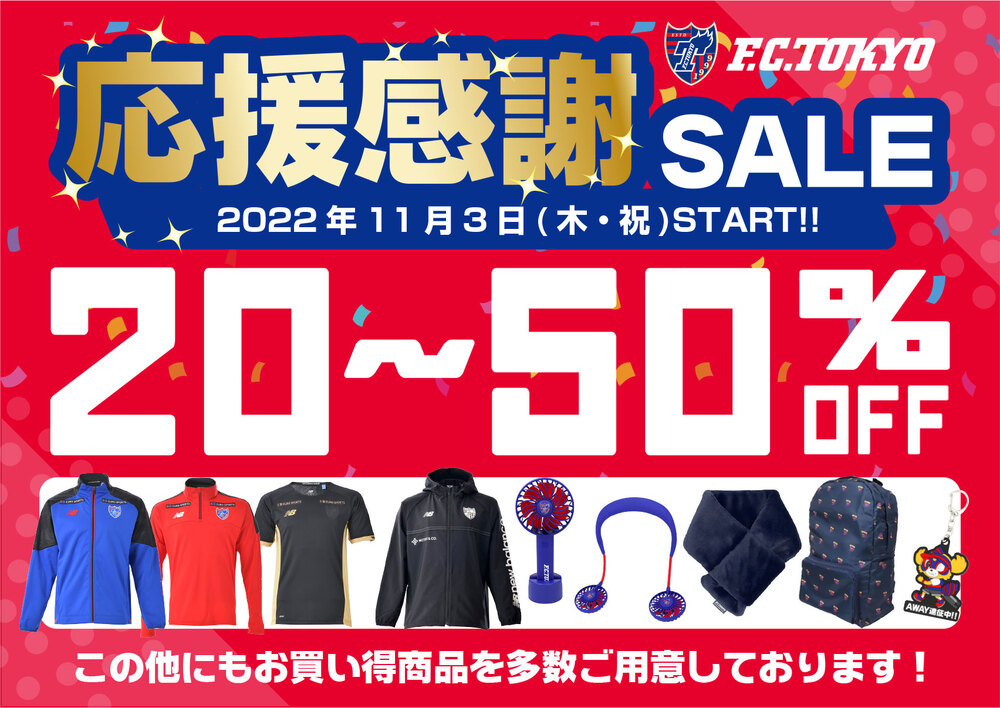 11월 5일(토) 2022 메이지 야스다 생명 J1리그 제34라운드 vs 가와사키 프론탈레(14:00 킥오프/아지노모토 스타디움)에서, 평소의 굿즈 판매점·가챠가챠 코너는 물론, 당일에는 응원 감사 SALE과 도쿄 복권을 실시합니다. 꼭 방문해 주세요!