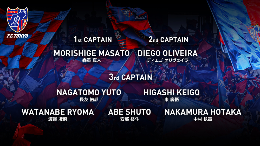 그리고 도쿄의 미래를 짊어질 존재로 기대하고 있는 (와타나베) 료마, (아베) 슈토, (나카무라) 호타카 세 명은, 캡틴의 올바른 모습을 베테랑 캡틴진에게서 배우면서 지금까지보다 더욱 주체적으로 팀을 이끄는 역할을 맡아주길 바라 임명했습니다.