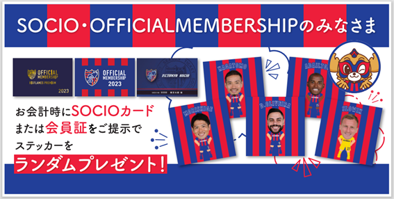 □SOCIO・OFFVIAL MEMBERSHIP 여러분께이번 시즌부터 굿즈 매장에서 쇼핑하실 때 SOCIO 카드 또는 OFFICIAL MEMBERSHIP 회원증을 제시하시면 플레이어 스티커를 랜덤으로 선물로 드립니다!