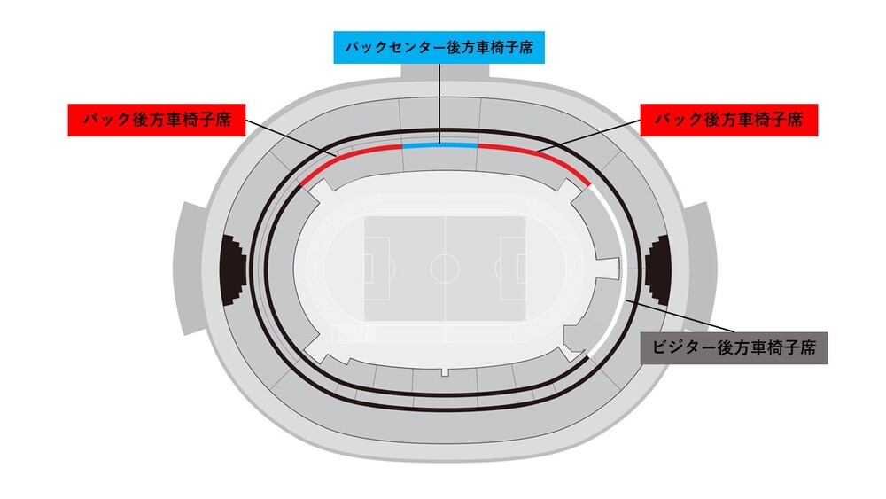「백 스탠드 후방 휠체어석」「홈 센터 후방 휠체어석」