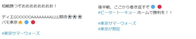 ① 보유하신 Twitter 계정으로 #TOKYO서머워즈 를 붙여 FC 도쿄의 승리를 향한 응원 댓글을 게시
