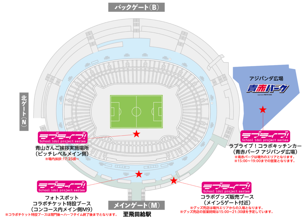 러브라이브! 콜라보 시트 특별 부스는 경기장 내 콘코스, M9 부근에 위치합니다.