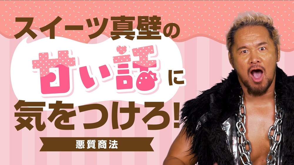 도쿄도에서는 젊은 층의 소비자 피해를 미연에 방지하고 조기 발견을 도모하기 위한 계몽 사업을 실시하고 있습니다. 프로레슬러 마카베 토기 씨가 출연하는 계몽 영상에서는 '달콤한 이야기'로 유인된 젊은이들에게 "쉽게 믿지 마라!!"라고 마카베 씨가 엄하게 경고합니다. "혼자 고민하지 말고 바로 상담"과 "☎188(소비자 핫라인)"을 소개합니다.