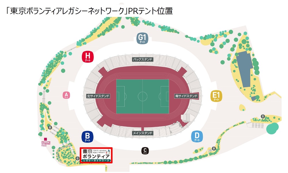 국립경기장 B 게이트 앞에 「도쿄 자원봉사 레거시 네트워크」PR 텐트를 출전하여, 노벨티 배포, 등록자 대상 선물 등을 준비하여 기다리고 있습니다!