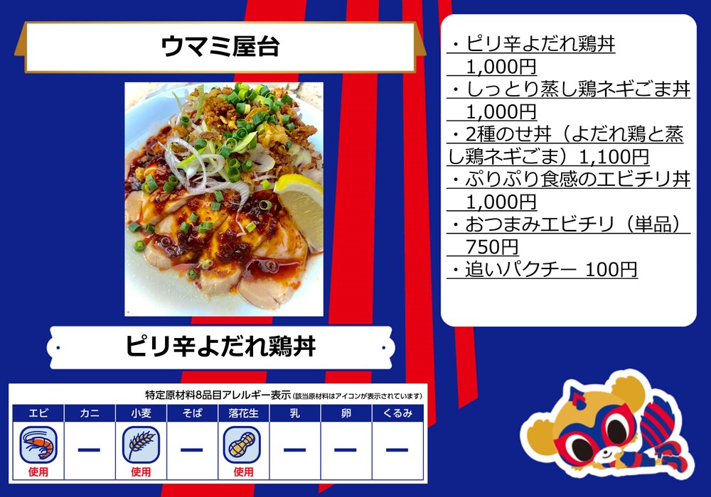 9월 23일(토·공휴일) 사간 도스전의 아오아카 파크 supported by TOKYO GAS(장외) 및 스타디움 내 콘코스(장내) 매장에서 판매하는 푸드 메뉴입니다.