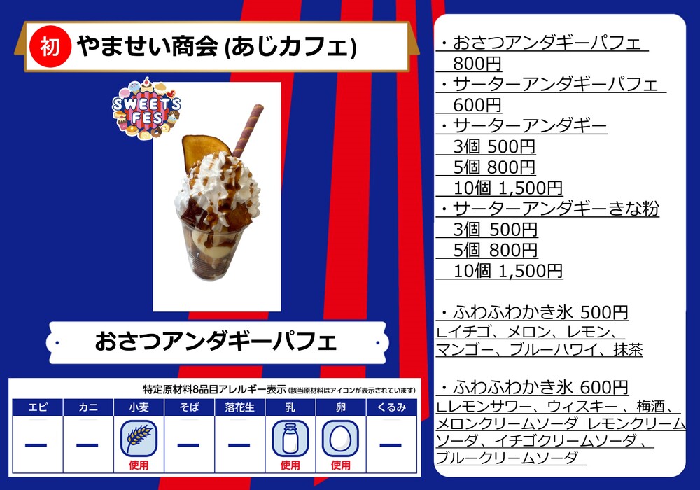 이번 경기는 「SWEETS FES」를 개최합니다! 평소의 아오아카 파크와는 달리, 다양한 스위츠 가게를 즐기실 수 있습니다!