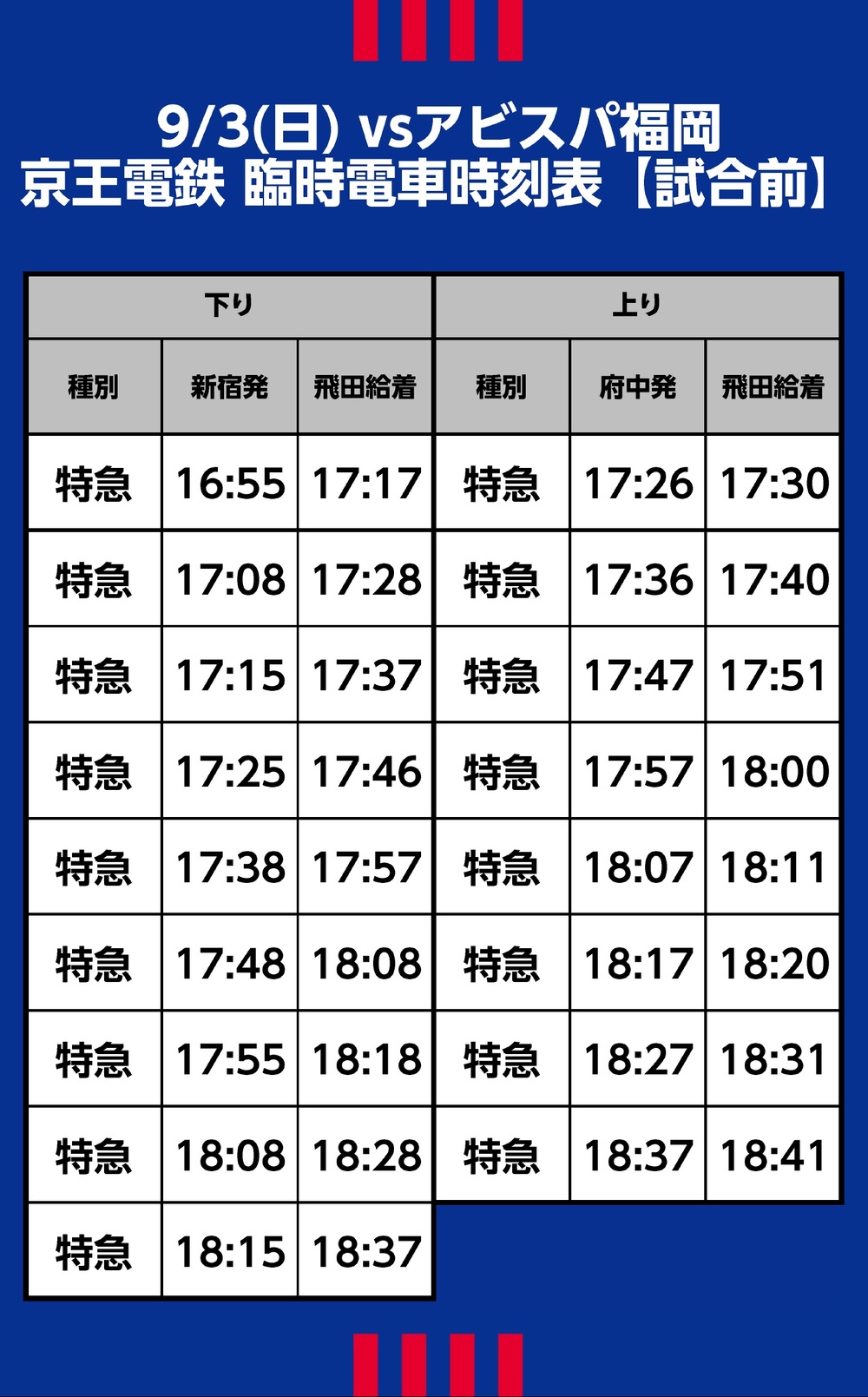 9월 3일(일) 2023 메이지 야스다 생명 J1 리그 제26절 vs 아비스파 후쿠오카(19:00 킥오프/아지노모토 스타디움)에서 운행되는 임시 교통 접근(철도), 셔틀버스·노선버스에 대해 안내드립니다.