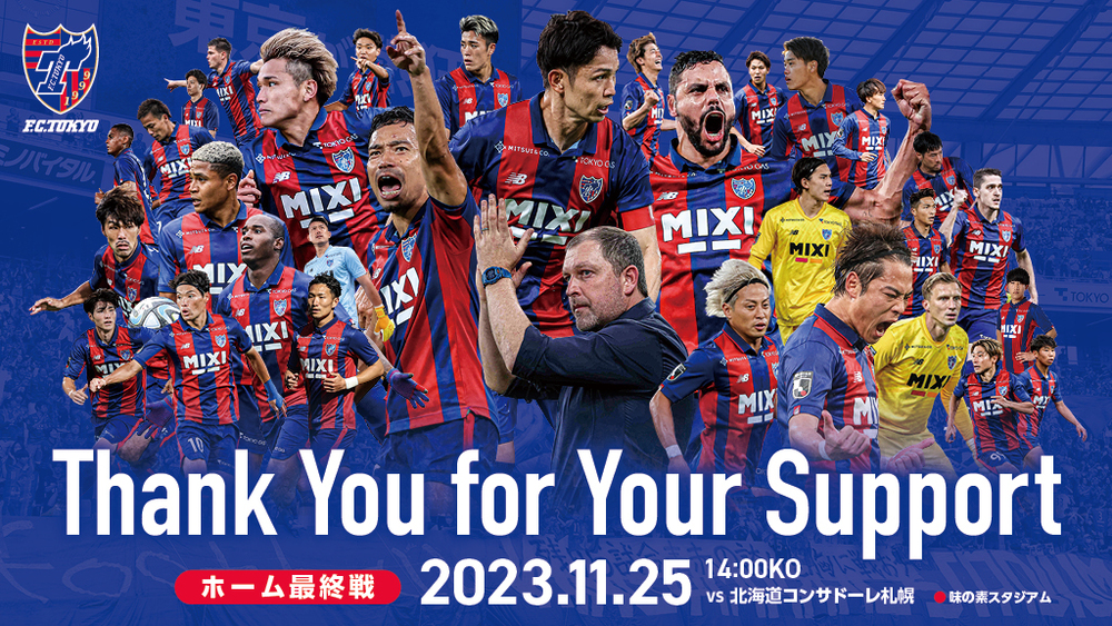 11월 25일(토) 홋카이도 콘사도레 삿포로전은 『Big Thank You Day~이번 시즌도, 고마워요 도쿄!~』로서, 감사한 마음을 안고 2023 시즌의 홈 최종전을 치릅니다.