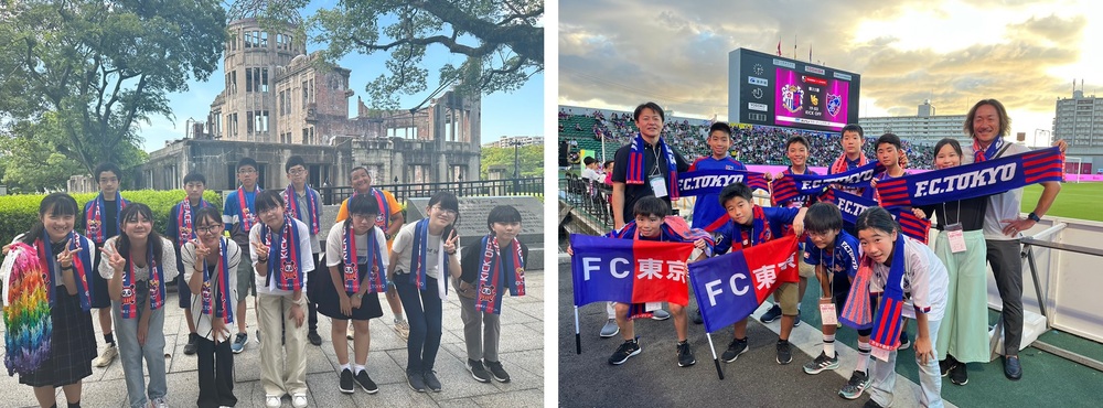 시내 중학생 12명을 "피스 메신저"로 히로시마에, 초등학생 9명을 "피스 메신저 주니어"로 오사카·히로시마에 파견했습니다. 각각 현지에서 배운 것과 평화에 대한 생각을 무대에서 발표합니다.