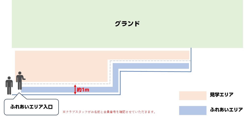 연습은 누구나 견학할 수 있으나, 교류에 대해서는추첨으로 당첨된 초등학생 이하 SOCIO·MEMBERSHIP 여러분을 대상으로 '교류 구역'을 설정하여 실시합니다.