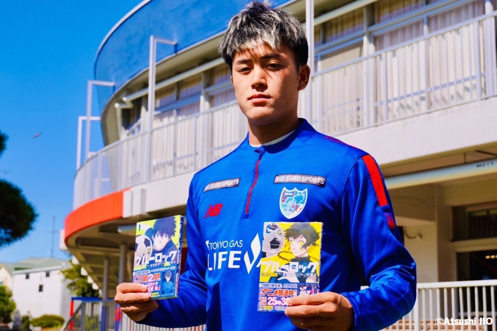인기 축구 만화 『블루 락』을 좋아하는 쿠마다 나오키 선수가, 그 매력과 스트라이커로서의 자신의 생각 등을 작품의 등장인물과 장면에 겹쳐 이야기하고 있습니다.