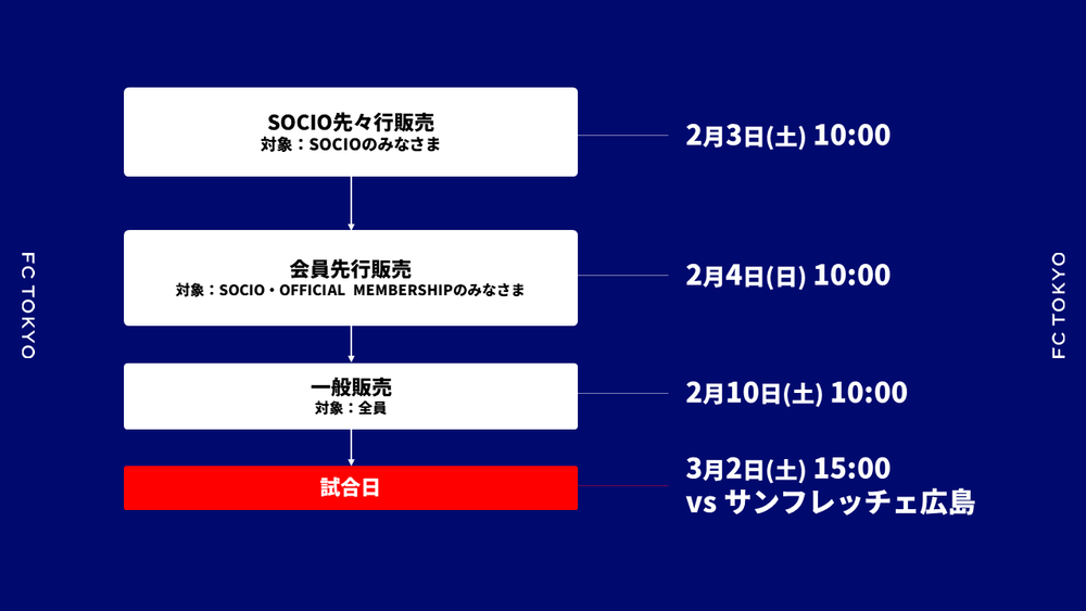 티켓은 FC 도쿄(J리그 티켓)에서만 판매됩니다. 편의점이나 경기 당일 스타디움 매표소에서는 판매하지 않으니 양해 부탁드립니다.
