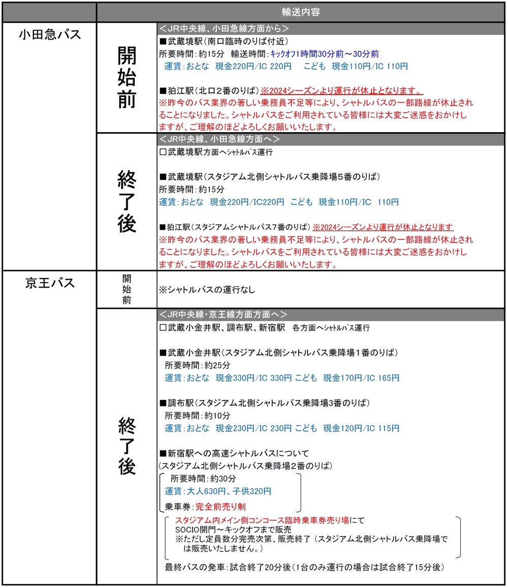 4월 21일(일) 2024 메이지 야스다 J1리그 제9절 vs FC 마치다 제르비아(15:00 킥오프/아지노모토 스타디움)에서 운행되는 임시 교통 접근(철도), 셔틀버스·노선버스에 대해 안내드립니다.