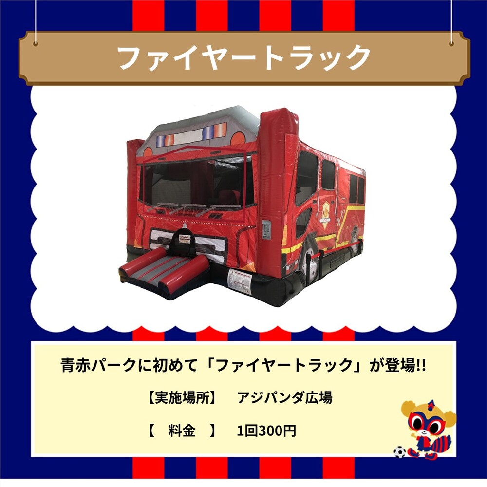 이날은 아오아카 파크에 부드러운 놀이기구 '파이어 트럭'이 처음 등장합니다! 꼭 즐겨주세요.