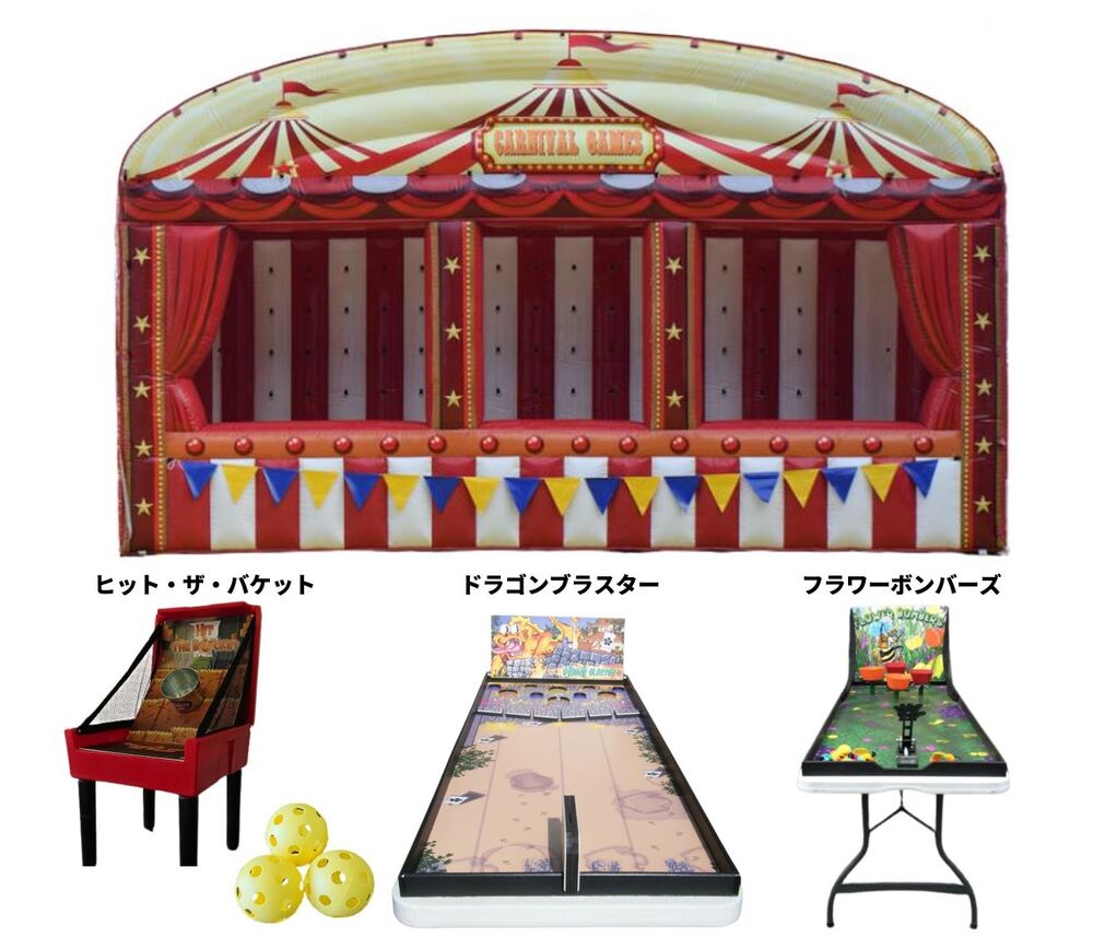 사격, 요요 뜨기, 슈퍼볼 뜨기 등 축제에서 익숙한 각종 부스를 설치합니다.