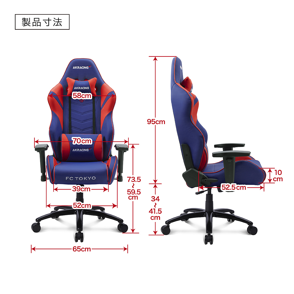 이번 콜라보 시트는 AKRacing 게이밍 체어의 스탠다드 모델로 정평이 난 Overture 시리즈를 기반으로 한 상품입니다. 시트의 천은 FC 도쿄의 팀 컬러인 블루/레드를 기본으로 하며, 등받이 중앙에 클럽 팀 엠블럼을 배치한 디자인입니다.