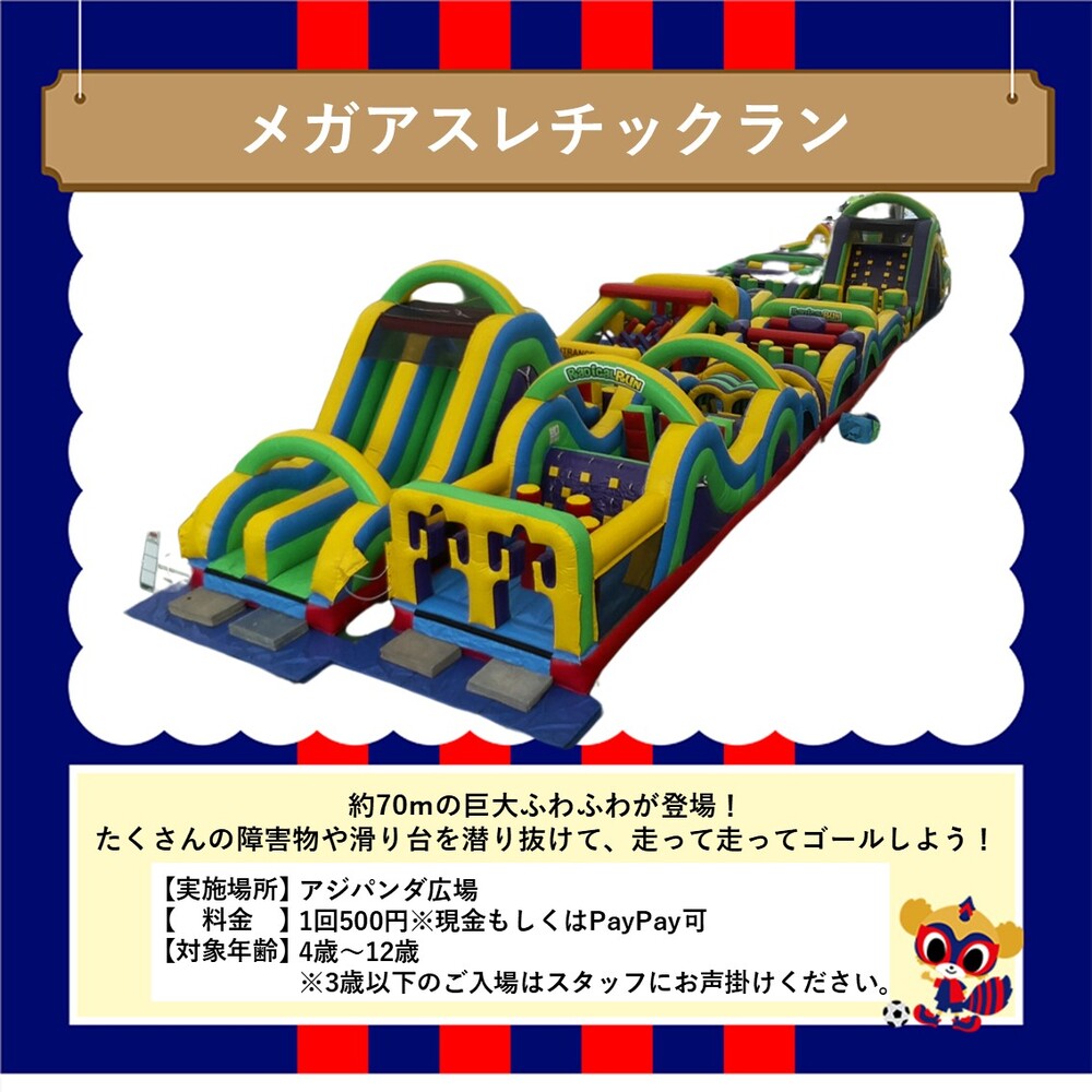 이 날은 약 70m의 거대한 푹신푹신 ‘메가 어슬레틱 런’이 처음 등장! 경기 전에 아오아카 파크에서 즐거운 추억을 만들어 보세요!