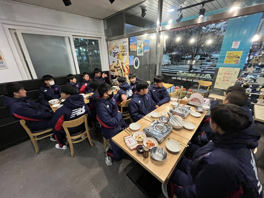 예정되어 있던 경기 또한 취소되어 선수들은 눈이 쌓인 공원에서 가벼운 운동을 하며 컨디션 조절을 실시했습니다.
