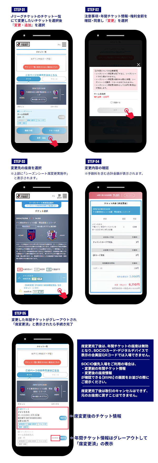 ・국립경기장 개최 홈게임에서는 홈 자유석 SOCIO 여러분께서 "좌석 0원 획득"을 실시할 예정이지만, 0원 획득 후의 티켓은 좌석 변경 서비스를 이용하실 수 없습니다.