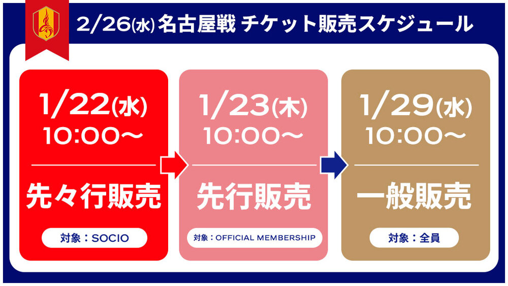 1월 22일(수) SOCIO 선선행 판매를 시작합니다. SOCIO 여러분은 회원 가격으로 구매하실 수 있습니다(1경기 4매까지).